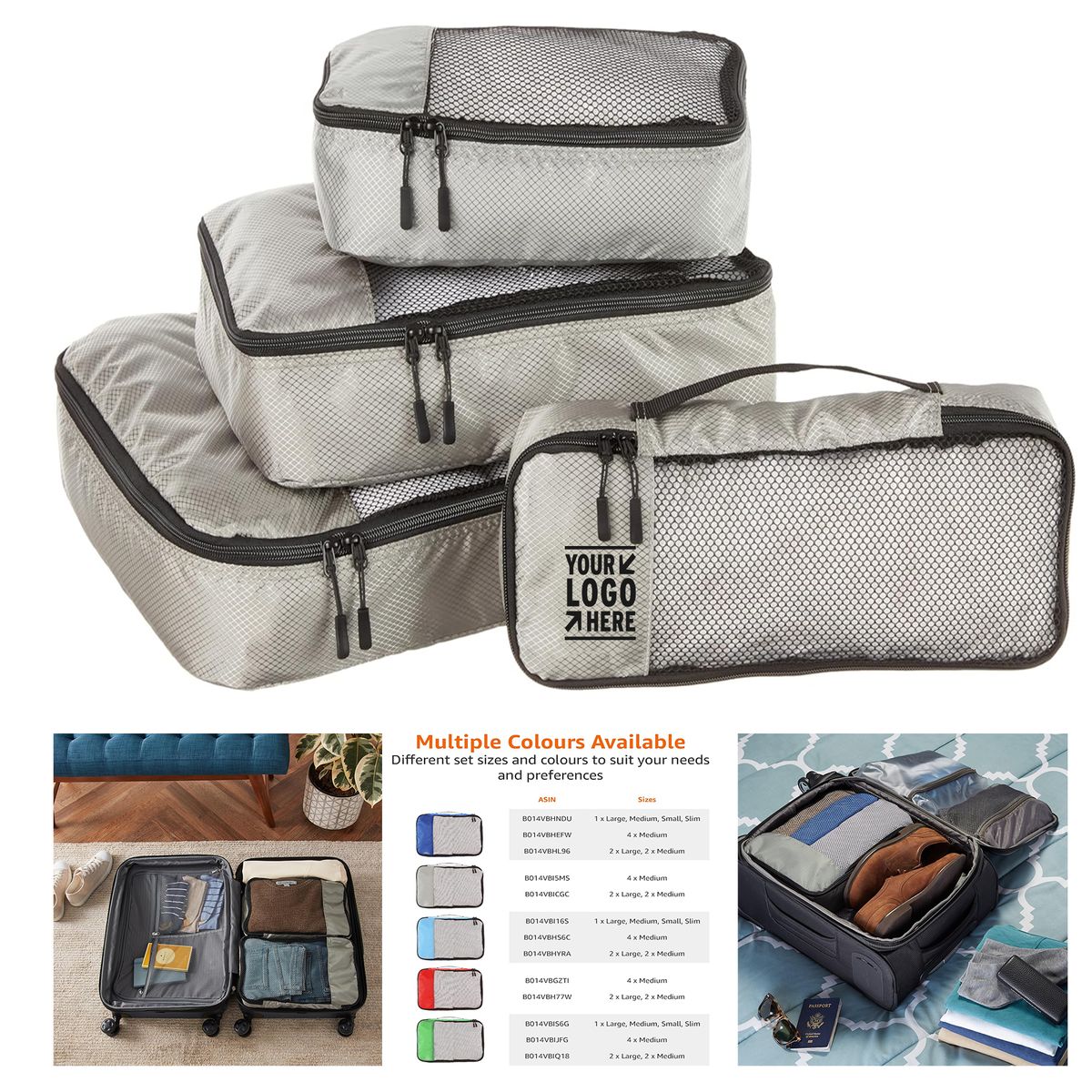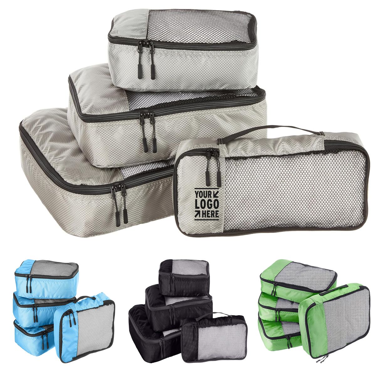 Durable construction with double zipper pulls, finished interior seams. Available in multiple sizes, styles for versatile convenience, webbing handle on each cube for easy carrying.