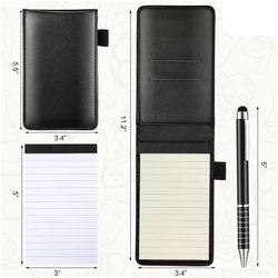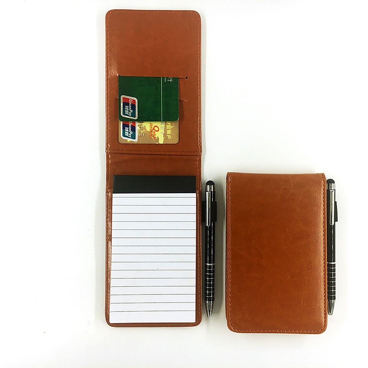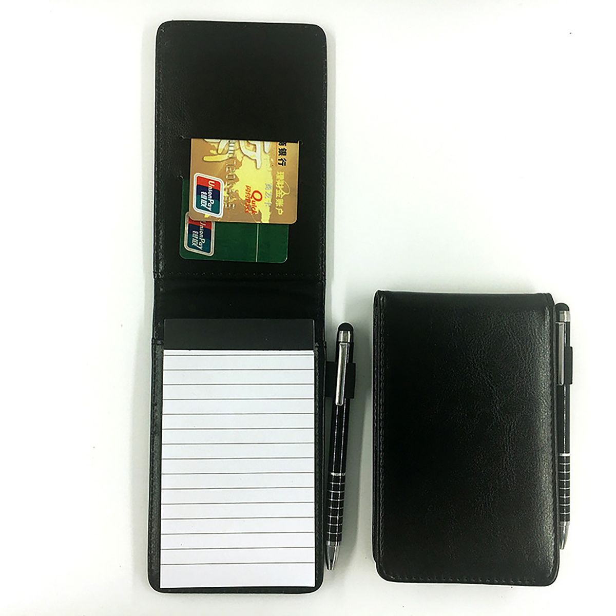 You will get a mini pocket notepad holder with 50 lined sheets, a metal pen. They are ruled pages, can comfortably, good for business, conference, meeting, office and travel; Can carry and use it anywhere. Keep everything need in one place with this mini pocket notepad holder; All in one design features 2 card slots and a pen holder, which is good for credit cards, passport, and pen; Paired with a slot for a 3 x 5 inch top bound notebook.